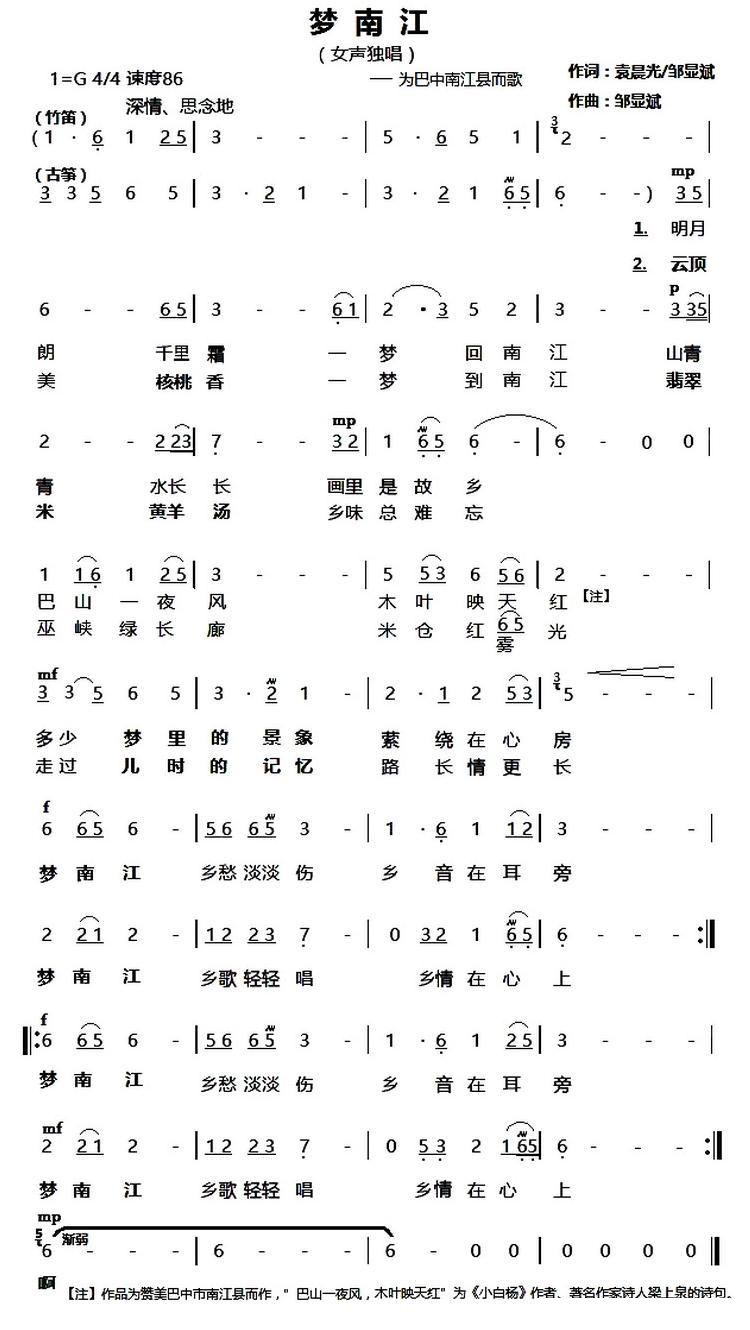 - [歌谱] 南江放歌