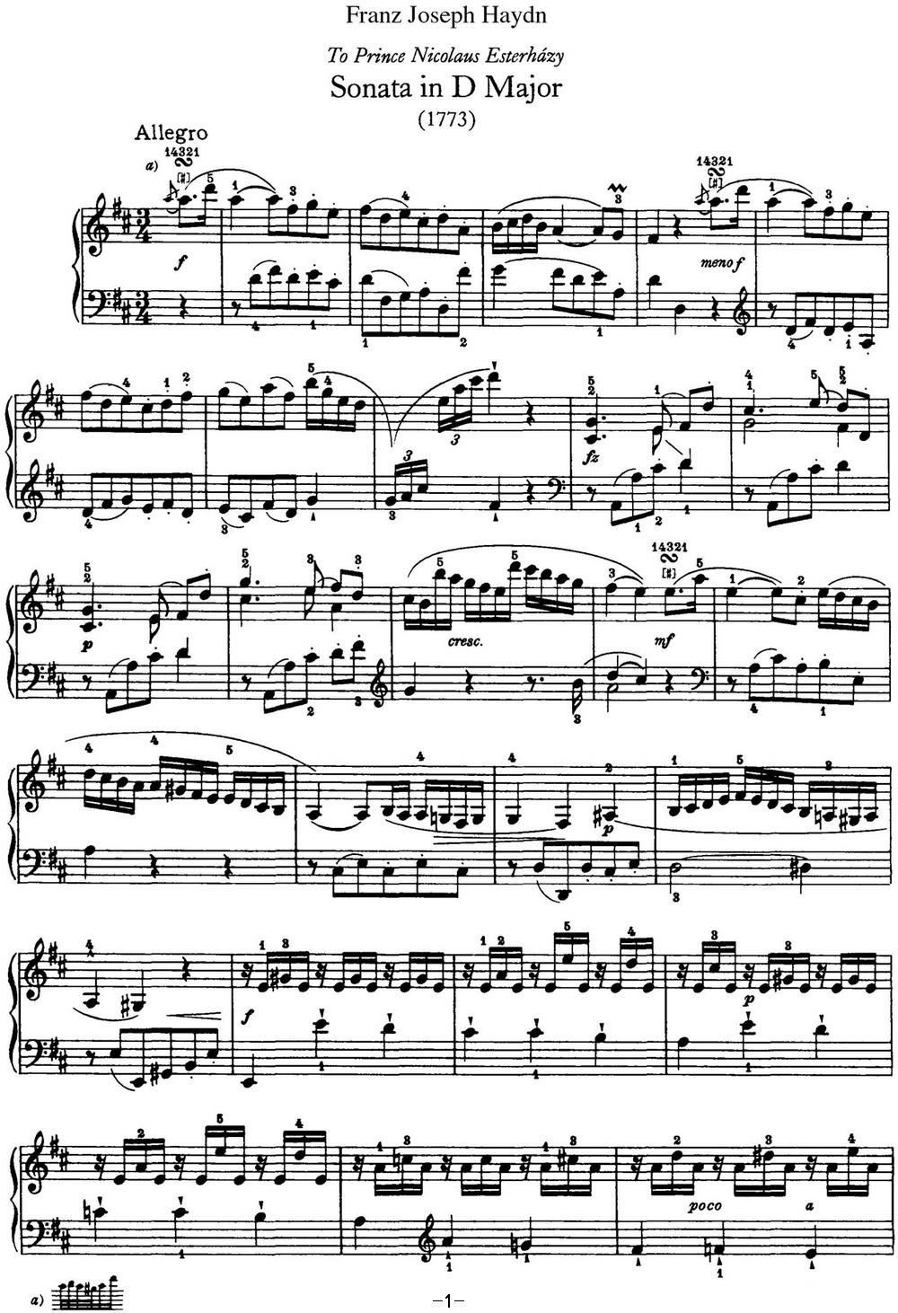 海顿 钢琴奏鸣曲 Hob XVI 24 in D major