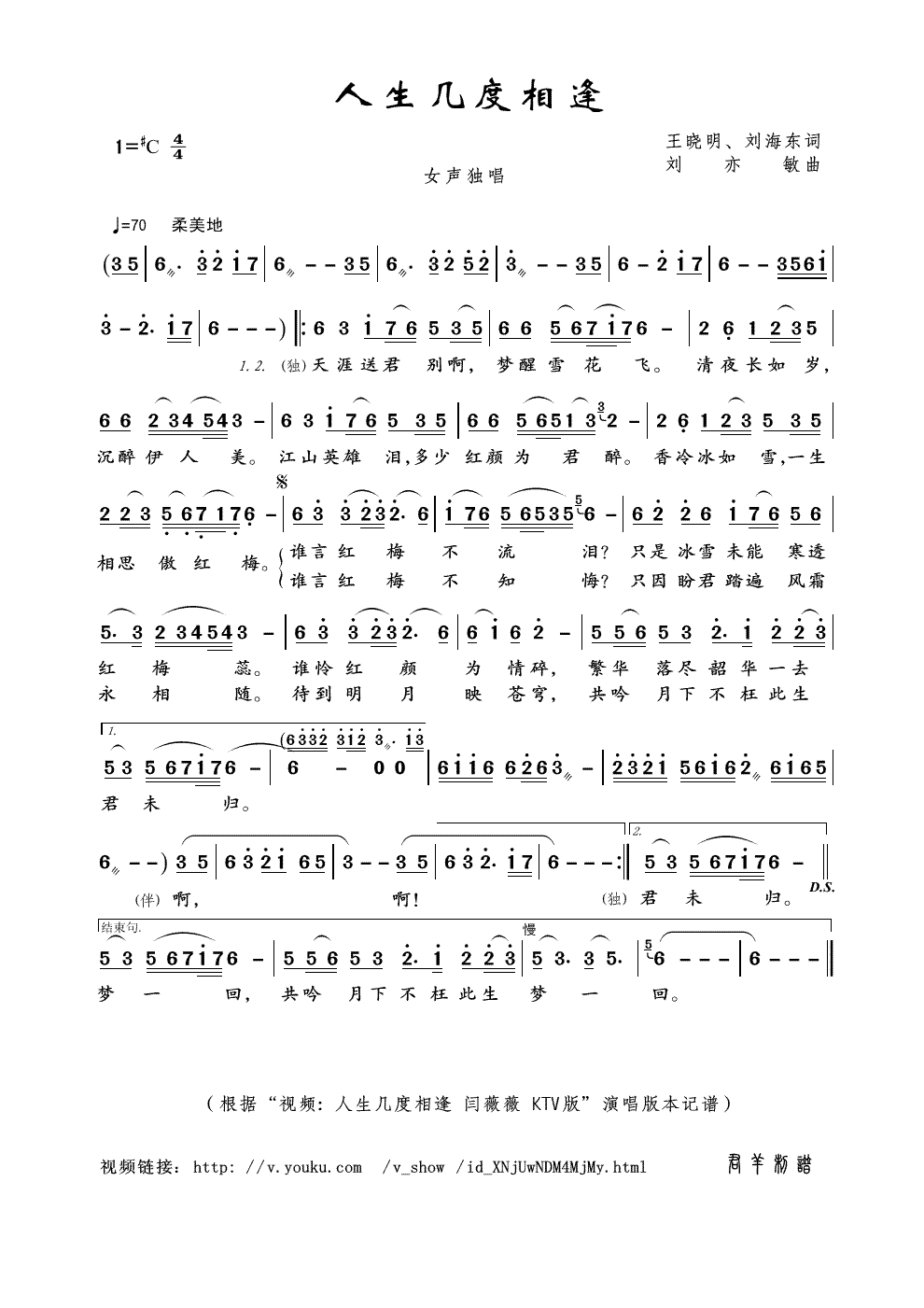 - [歌谱] 人生几度相逢