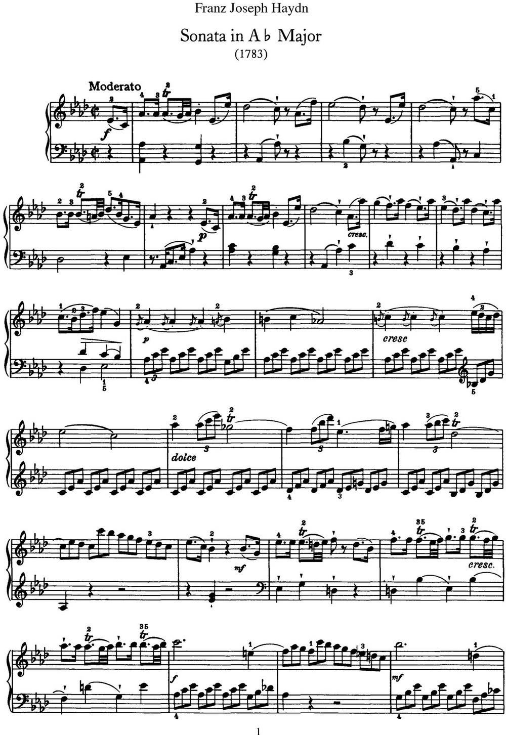 海顿 钢琴奏鸣曲 Hob XVI 43 in A flat major