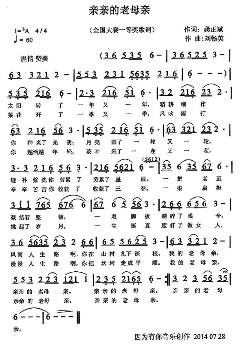 - [歌谱] 亲亲老母亲