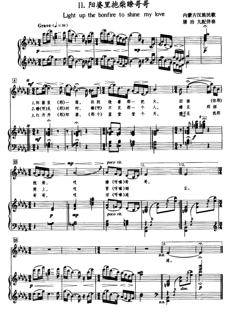 阳婆里抱柴瞭哥哥 钢琴伴奏谱