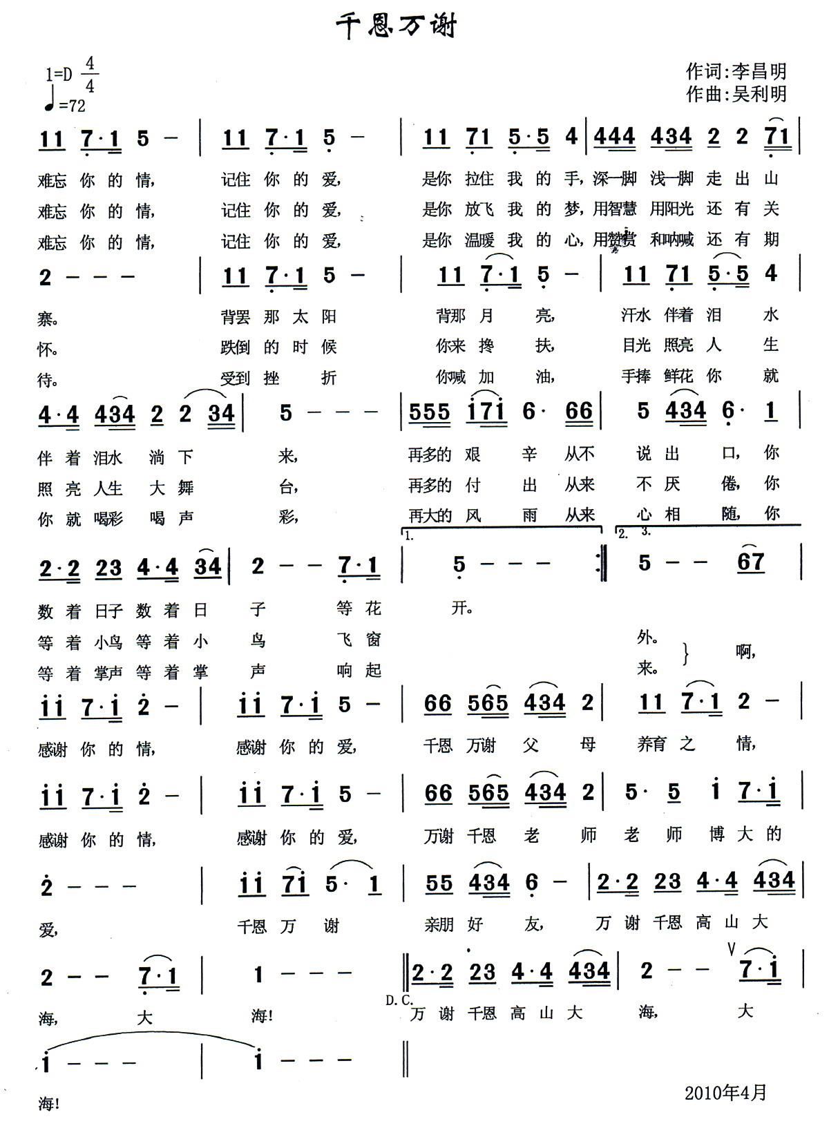 - [二胡谱,歌谱,扬琴谱] 千言万语