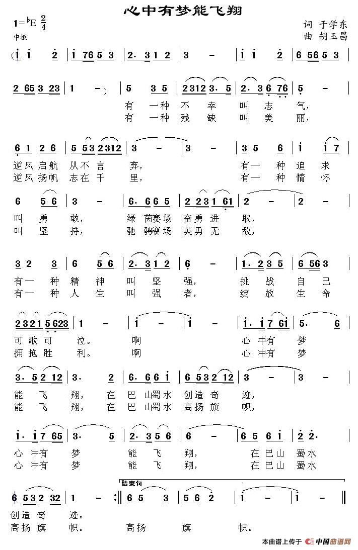 - [歌谱] 心中有梦能飞翔