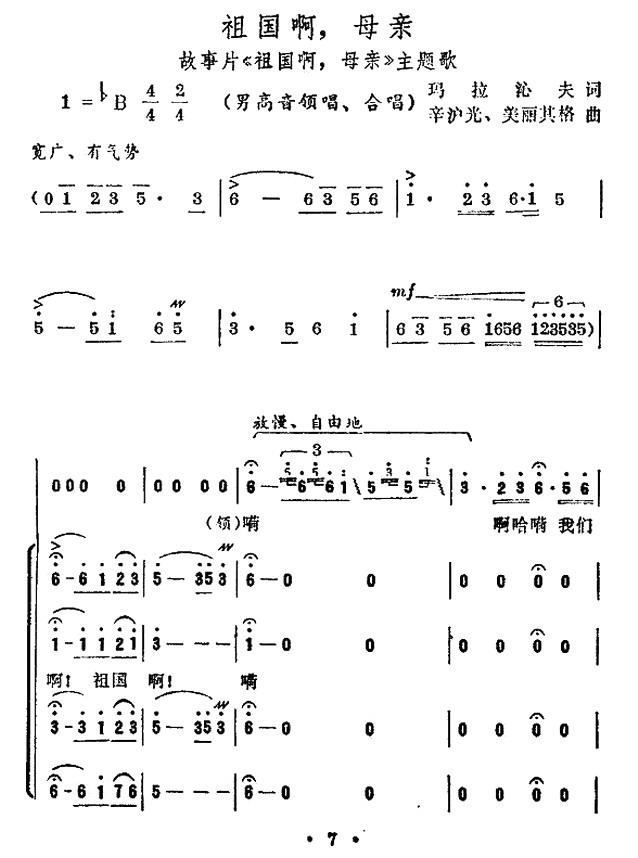 祖国啊 母亲 同名电影插曲