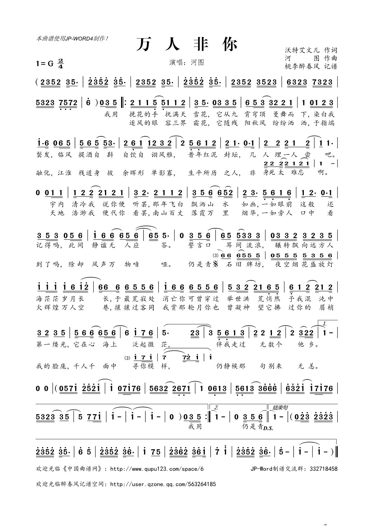 - [歌谱] ?万人非你