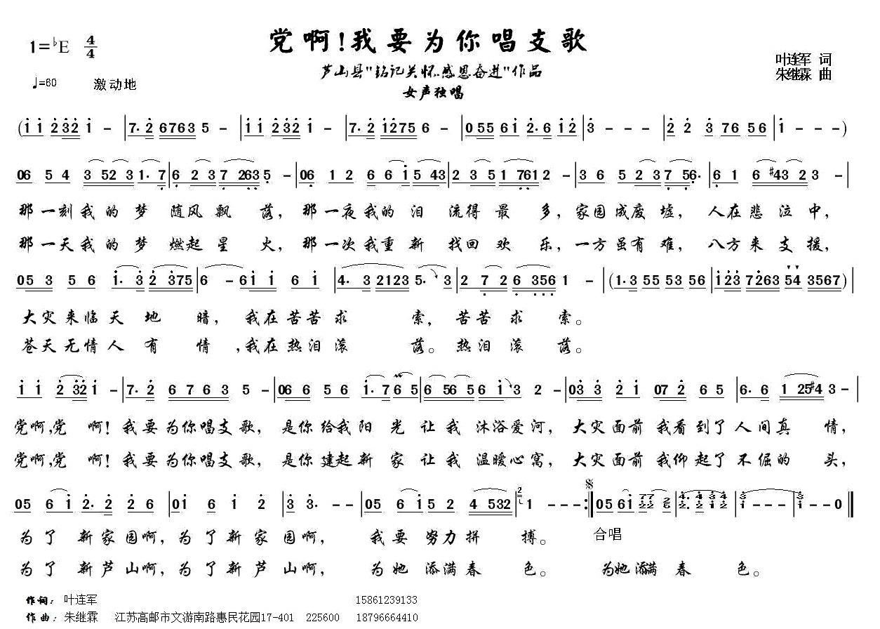 > 党呀 我要为你唱支歌