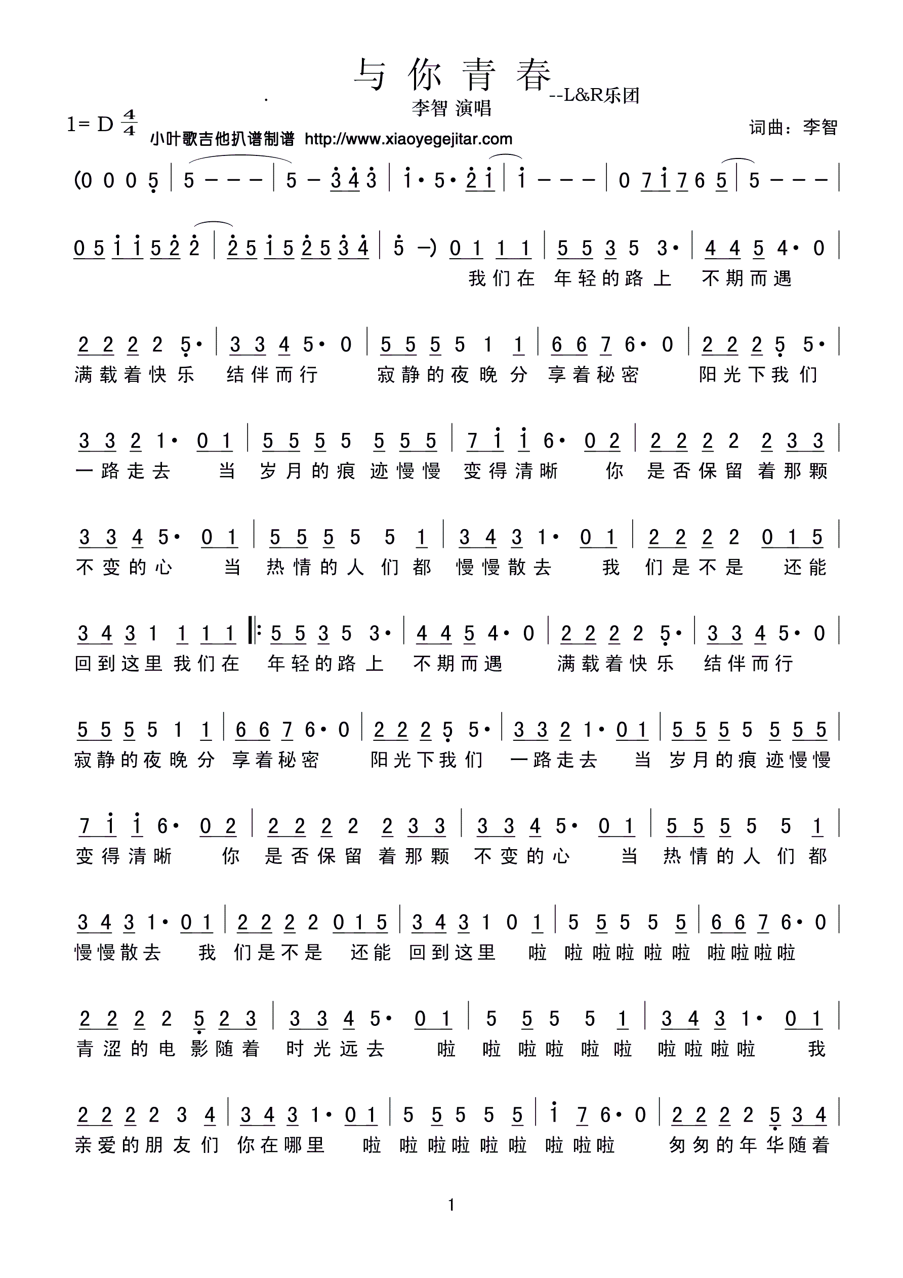 - [歌谱,歌谱] 为青春喝彩