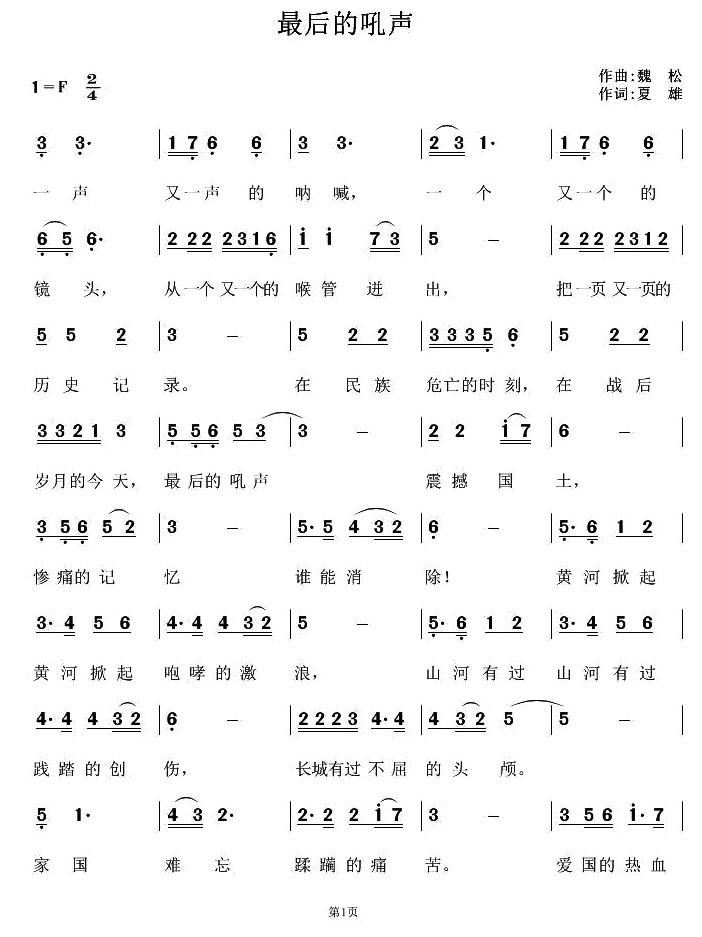 最后的吼声 为中国抗战胜利70周年而歌
