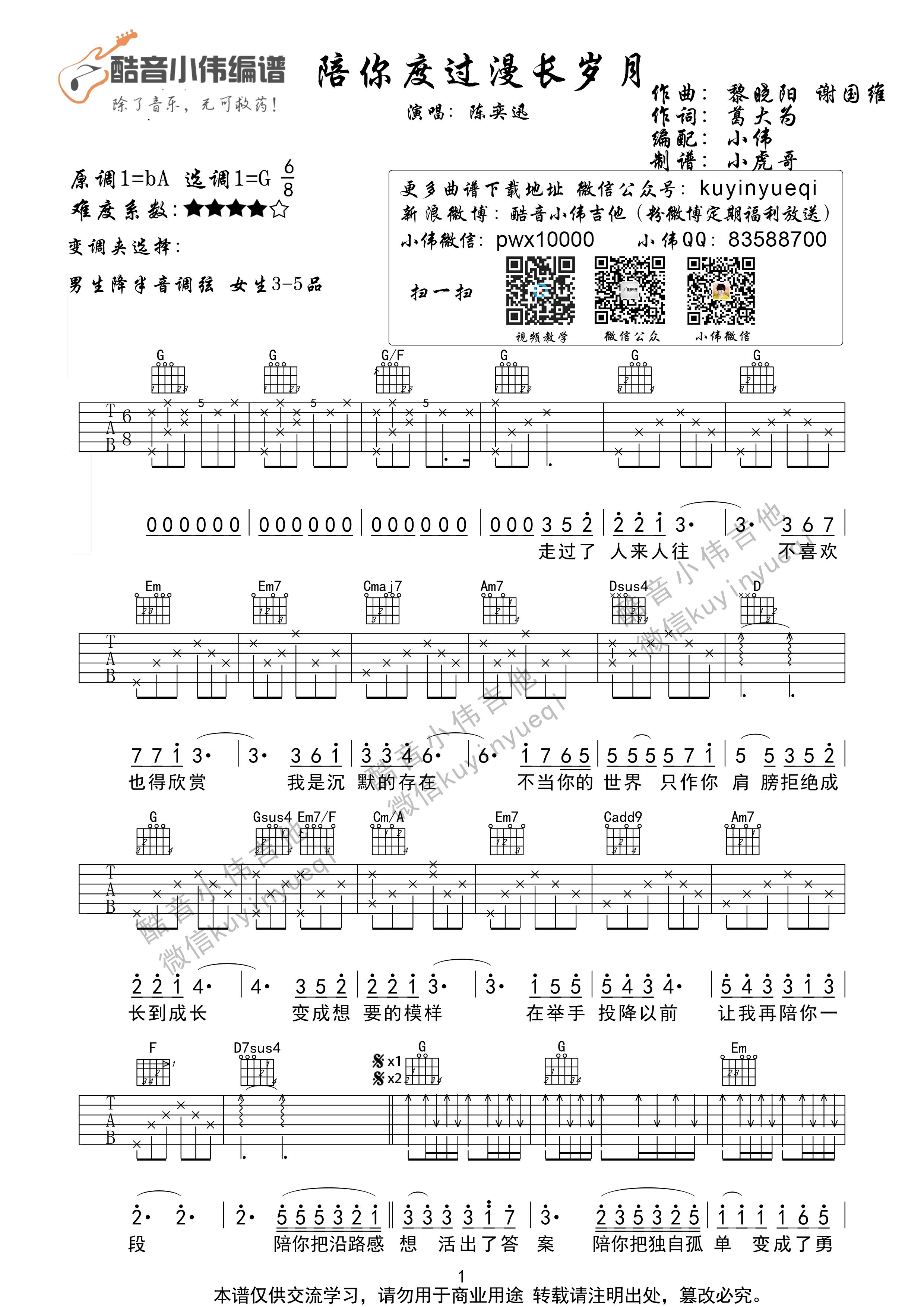 陪你度过漫长岁月 陈奕迅 酷音小伟编谱