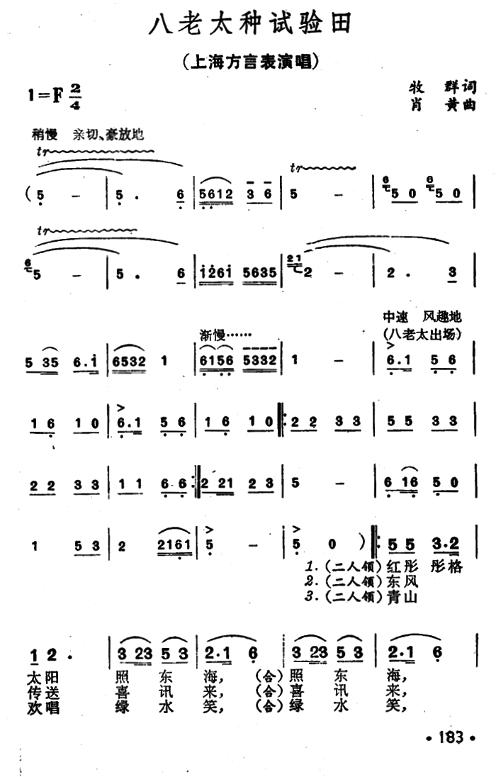 上海方言表 (2P 701x1097 词曲:陈树忠 浦东民歌)