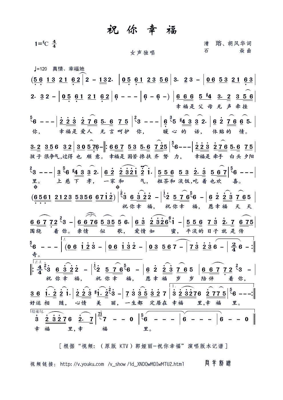 - [歌谱] 祝你幸福