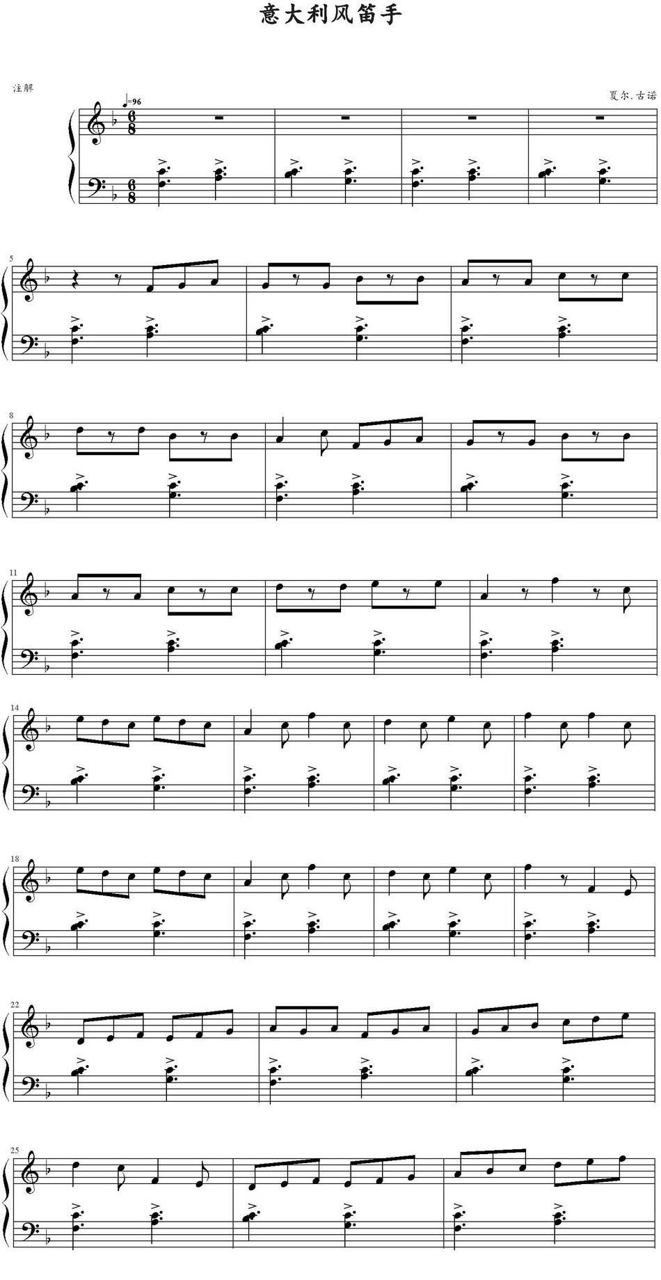 - [笛子谱,钢琴谱] 风笛手来了