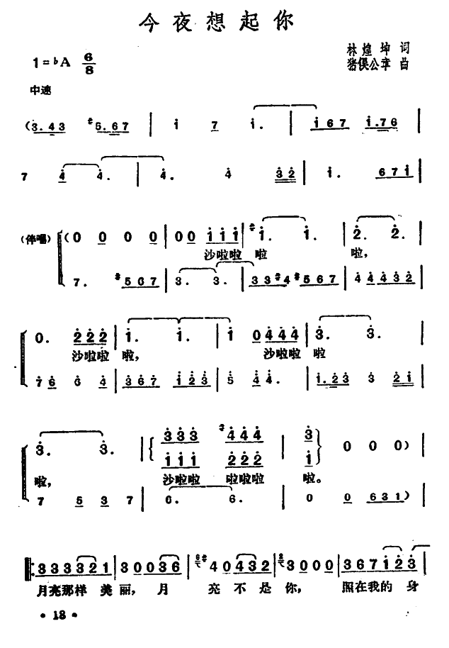 - [歌谱] 今夜想起你