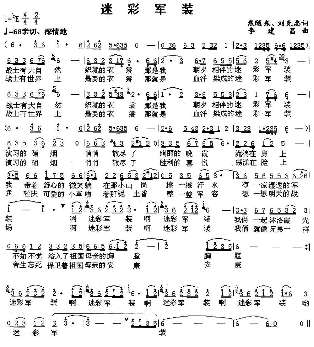 - [歌谱] 军人的心声 风中飞舞的华儿词
