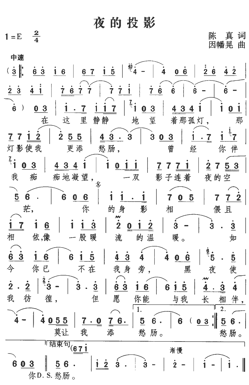 - [歌谱] 夜的投影