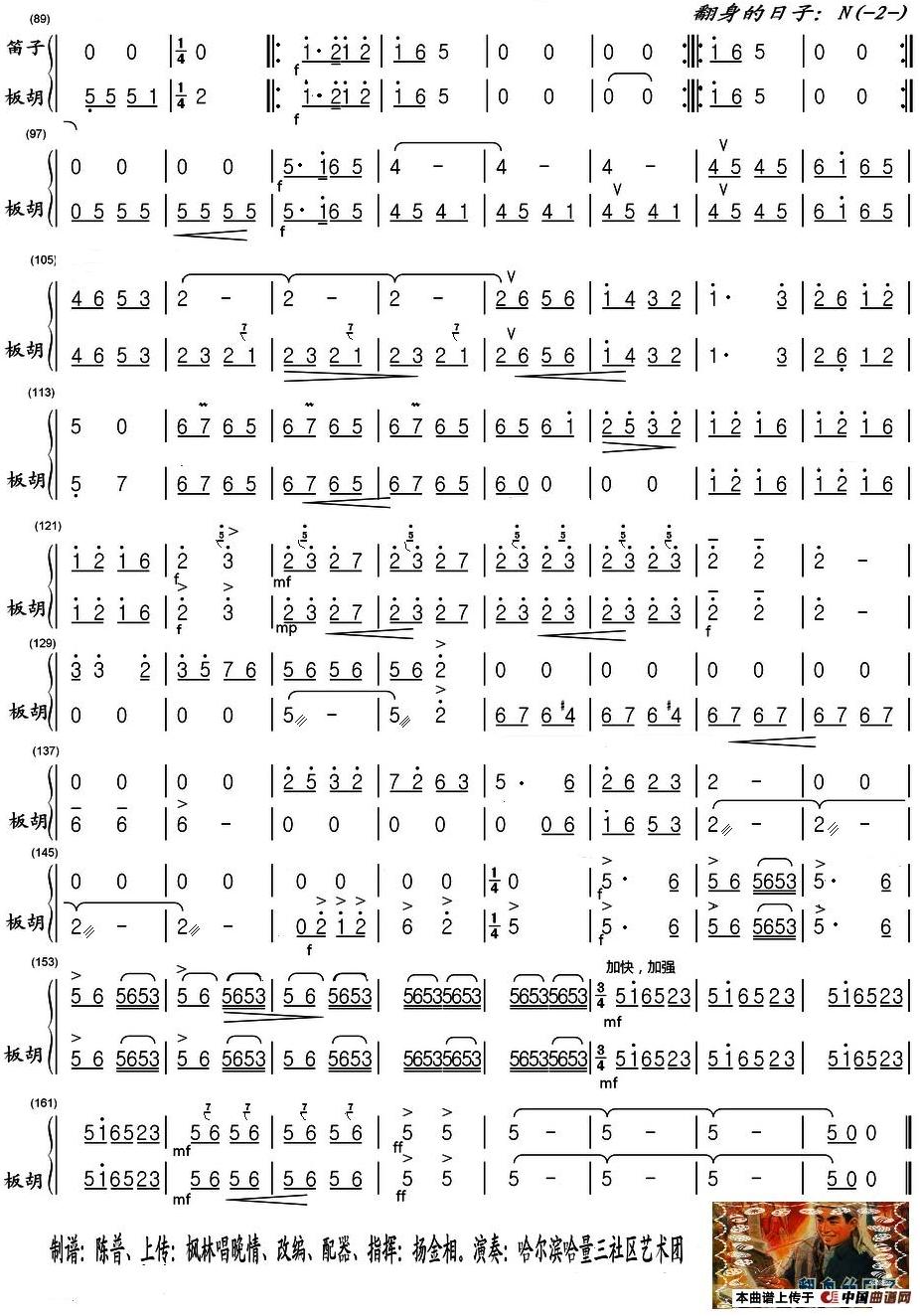 - [歌谱] 翻身的日子 民乐合奏