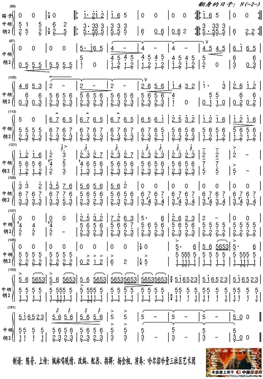 - [歌谱] 翻身的日子 民乐合奏