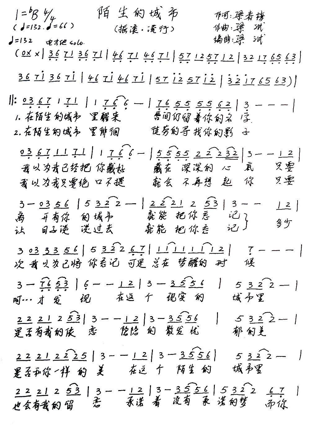 - [歌谱] 亲爱的城市