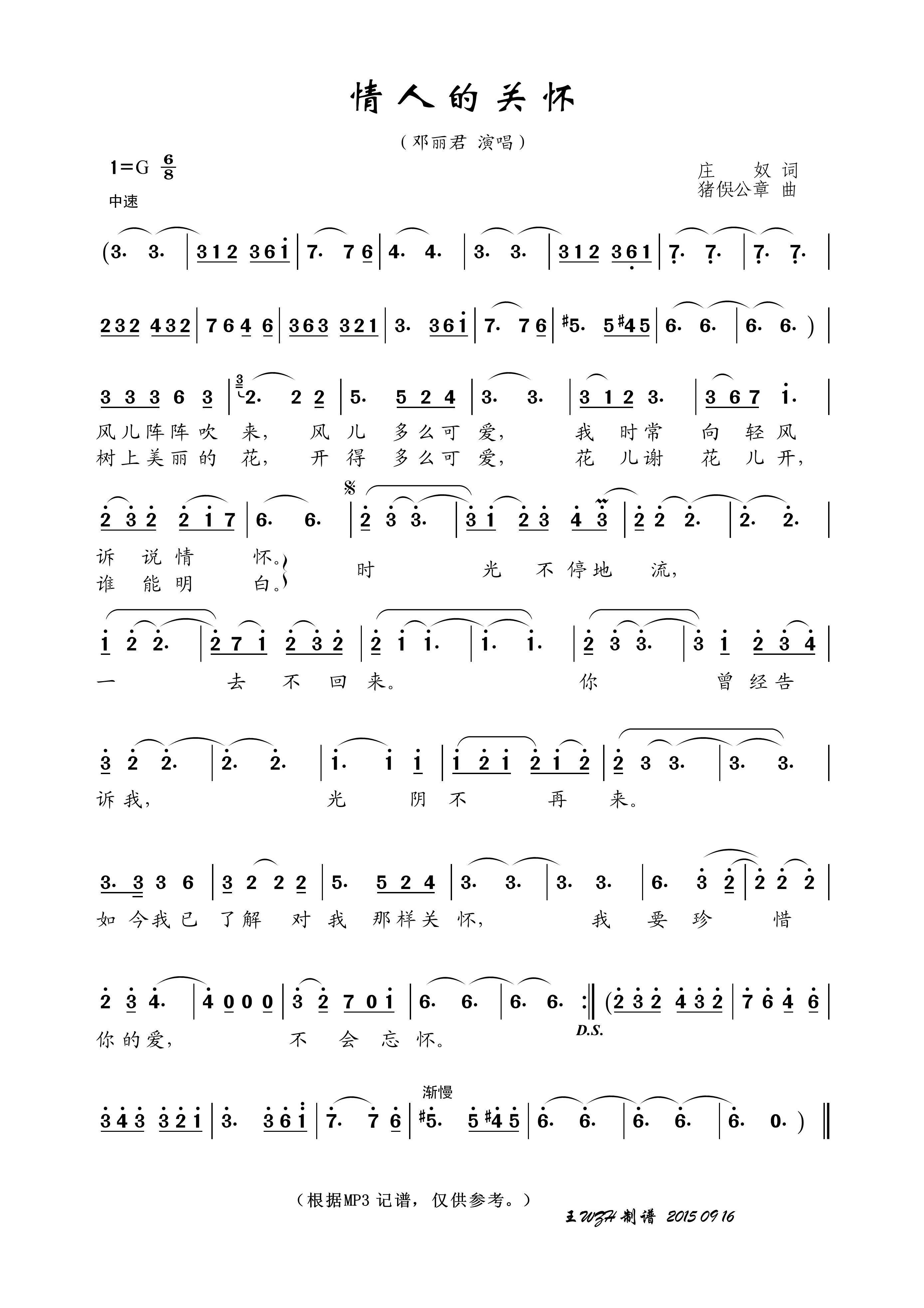 - [钢琴谱,萨克斯谱] 情人的关怀