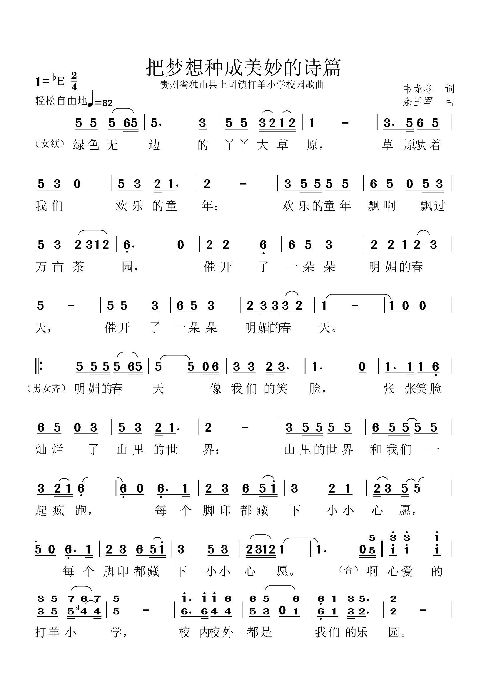 > 把梦想种成美妙诗篇 贵州独山县上司镇打羊小学校园歌曲
