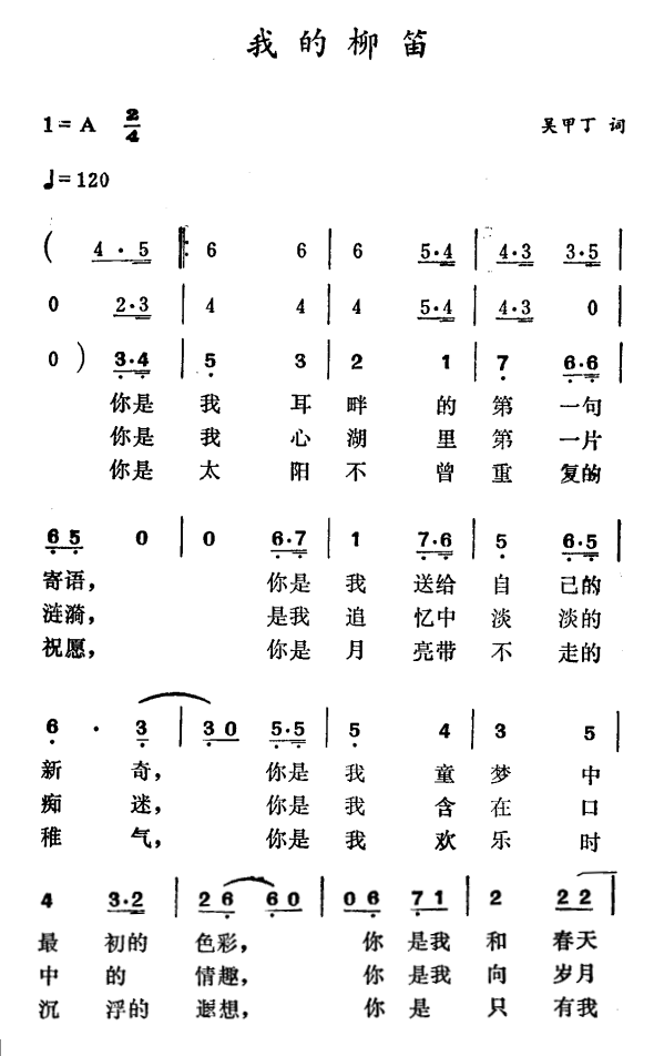 - [笛子谱,歌谱,箫谱] 你吹柳笛 我吹芦箫