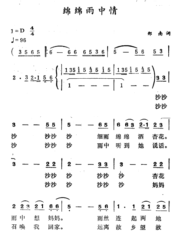 - [歌谱] 雨中情思