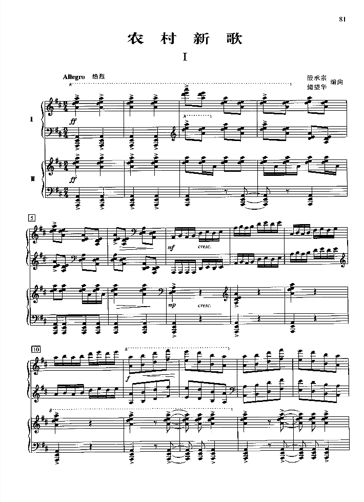 - [钢琴谱] 农村新歌 双钢琴 其一