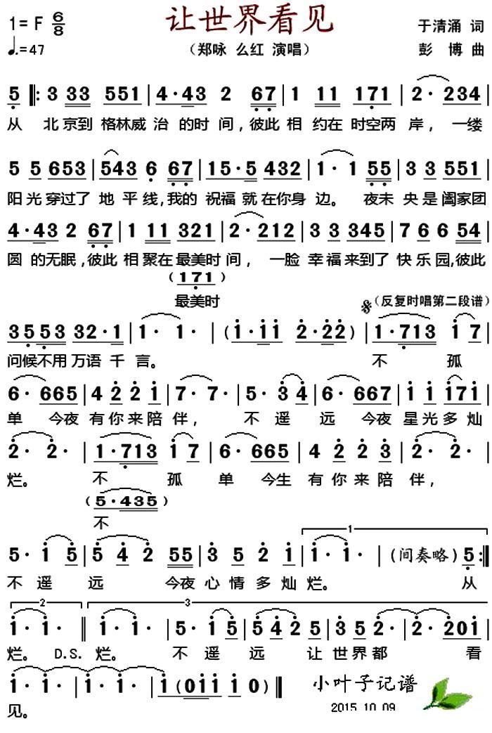 - [歌谱] 让世界看见
