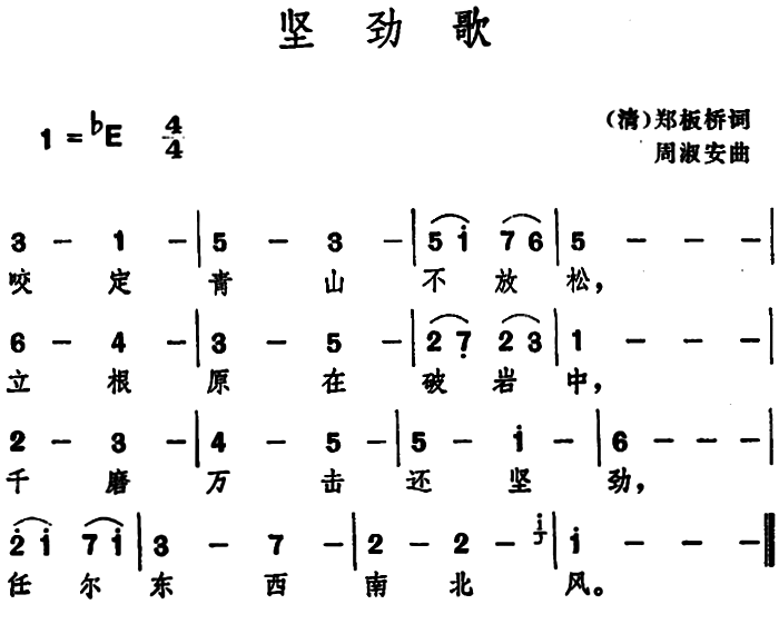 - [钢琴谱,歌谱] 清 郑板桥 坚劲歌 周淑安曲