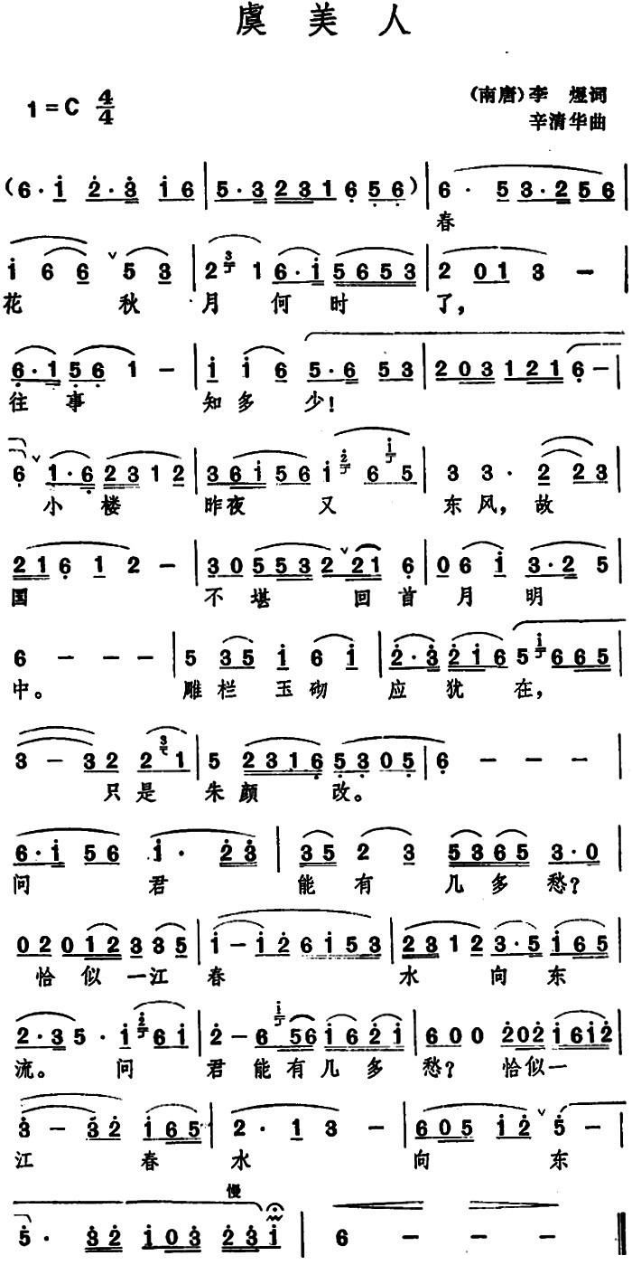 虞美人 春花秋月何时了 京歌 伴奏谱