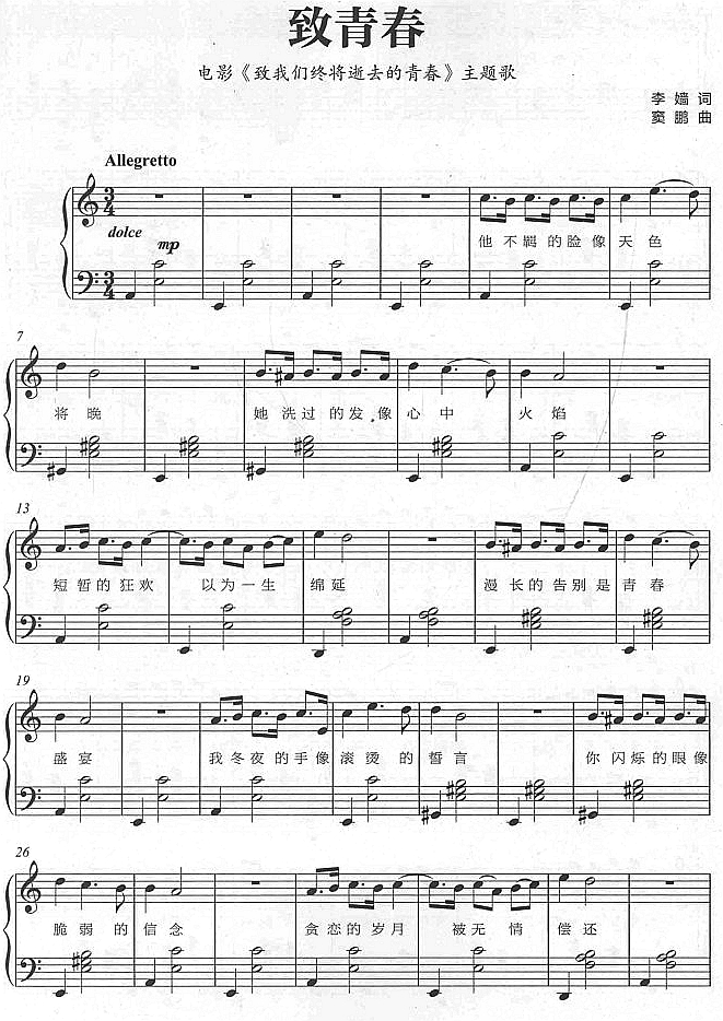 - [歌谱] 致青春