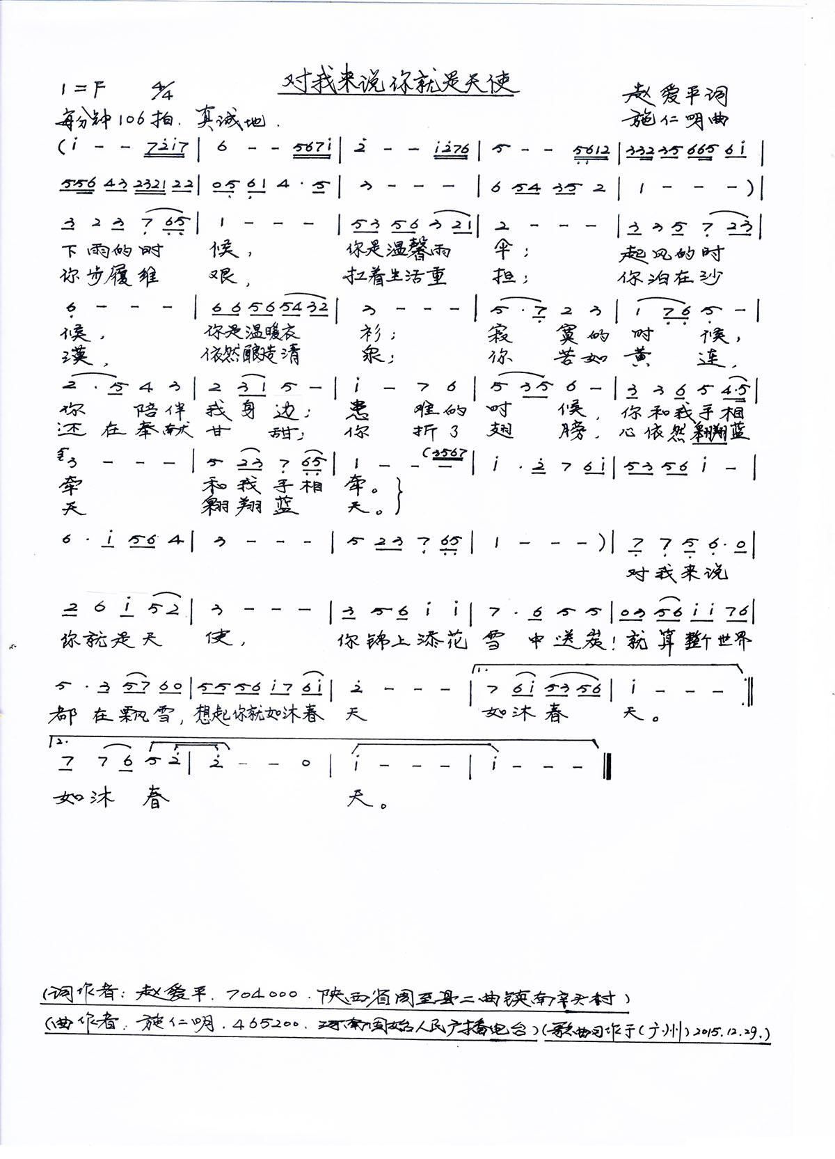 - [歌谱] 对我来说你就是天使