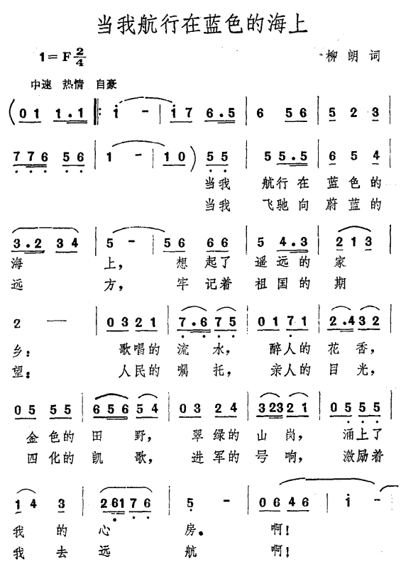> 当我航行在蓝色的海上