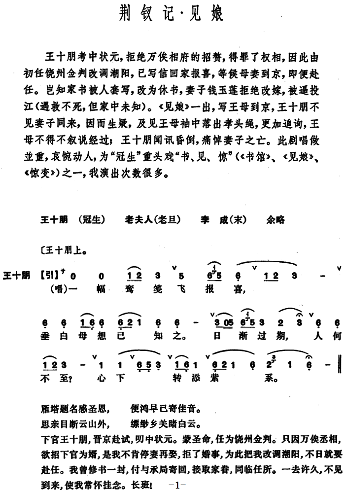 遥望南天倍伤神 荆钗记 王十朋唱段 越剧戏谱