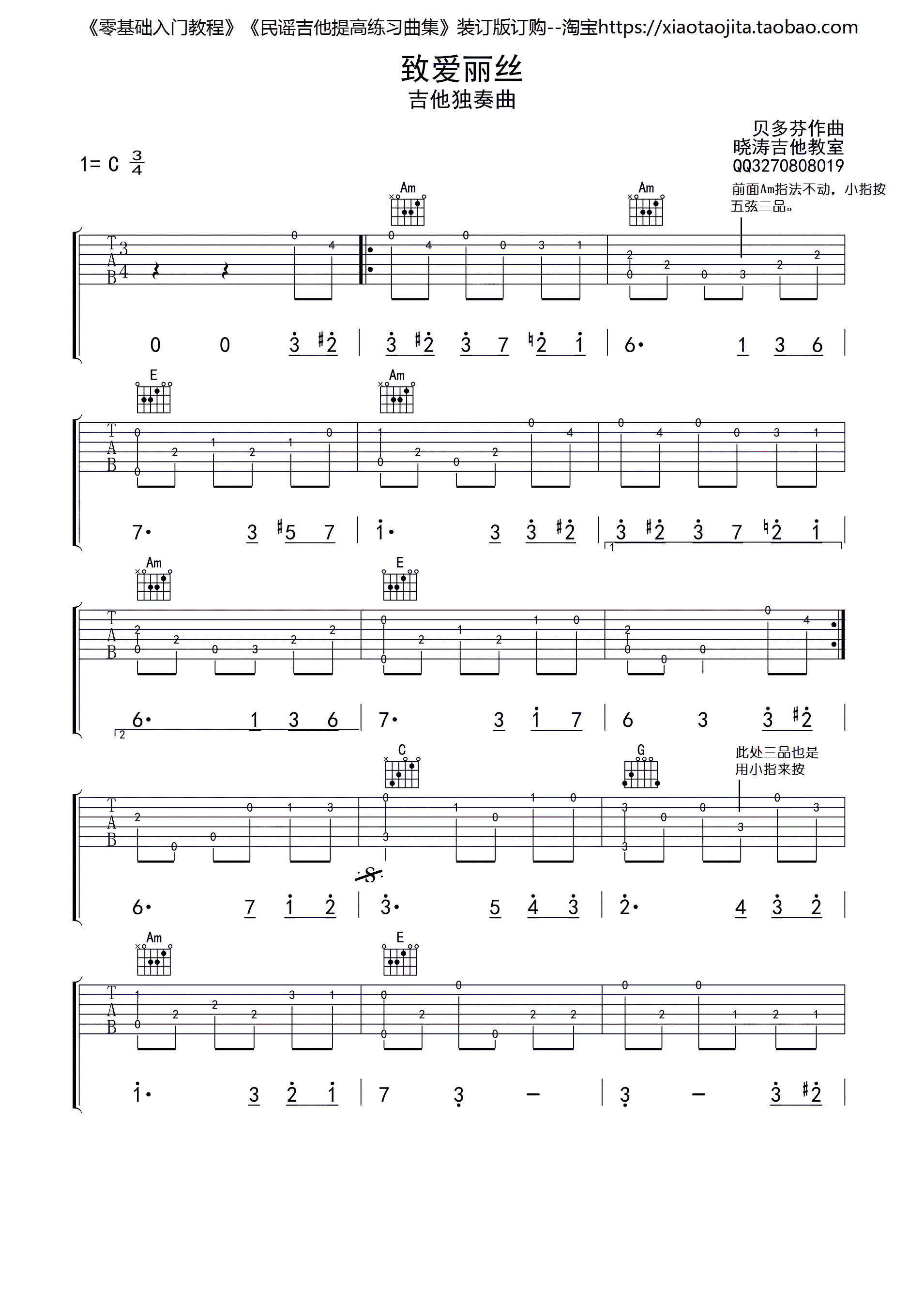 致爱丽丝 指弹吉他练习曲