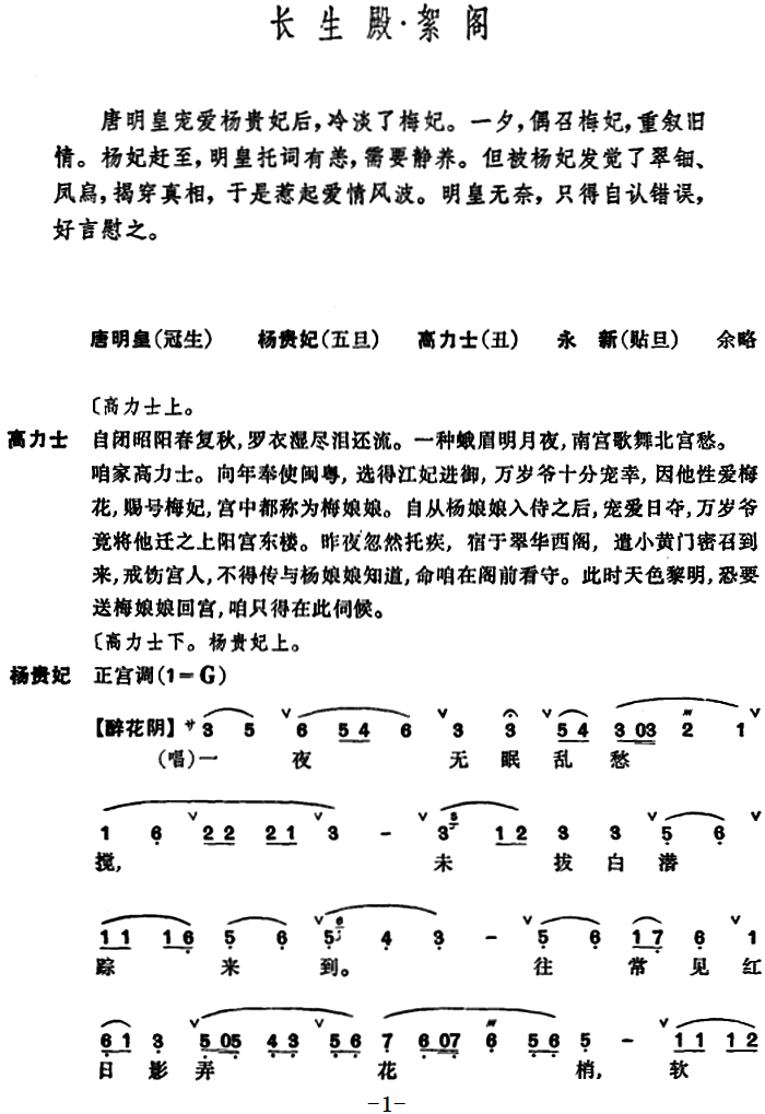 杨玉环长生殿今宵盟定 太真外传 选段 琴谱 京剧戏谱