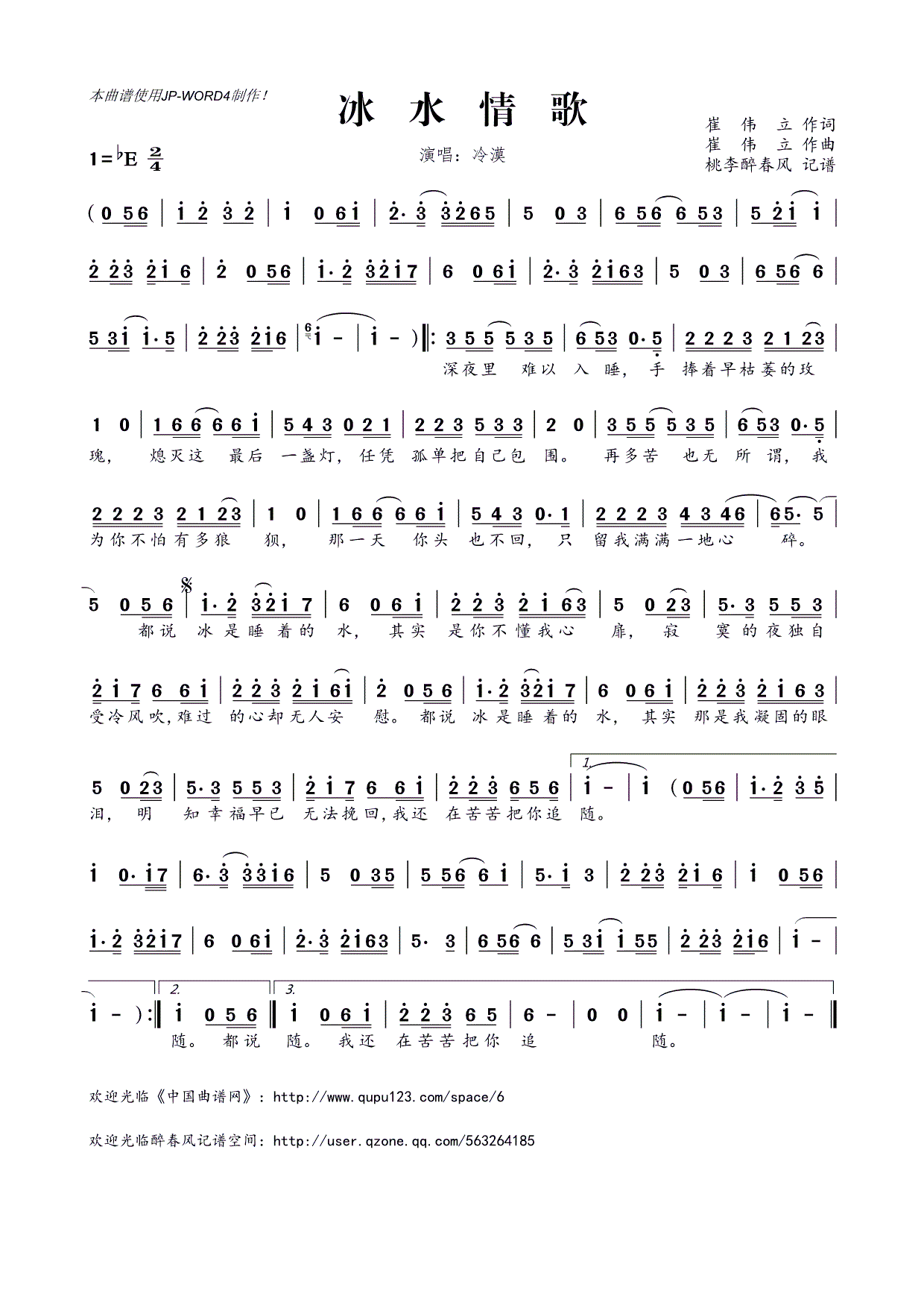 冷漠 司徒兰芳 (1P 1200x1697 词曲:崔伟立)