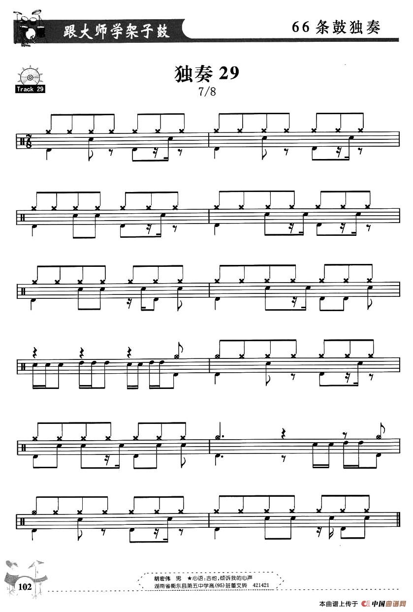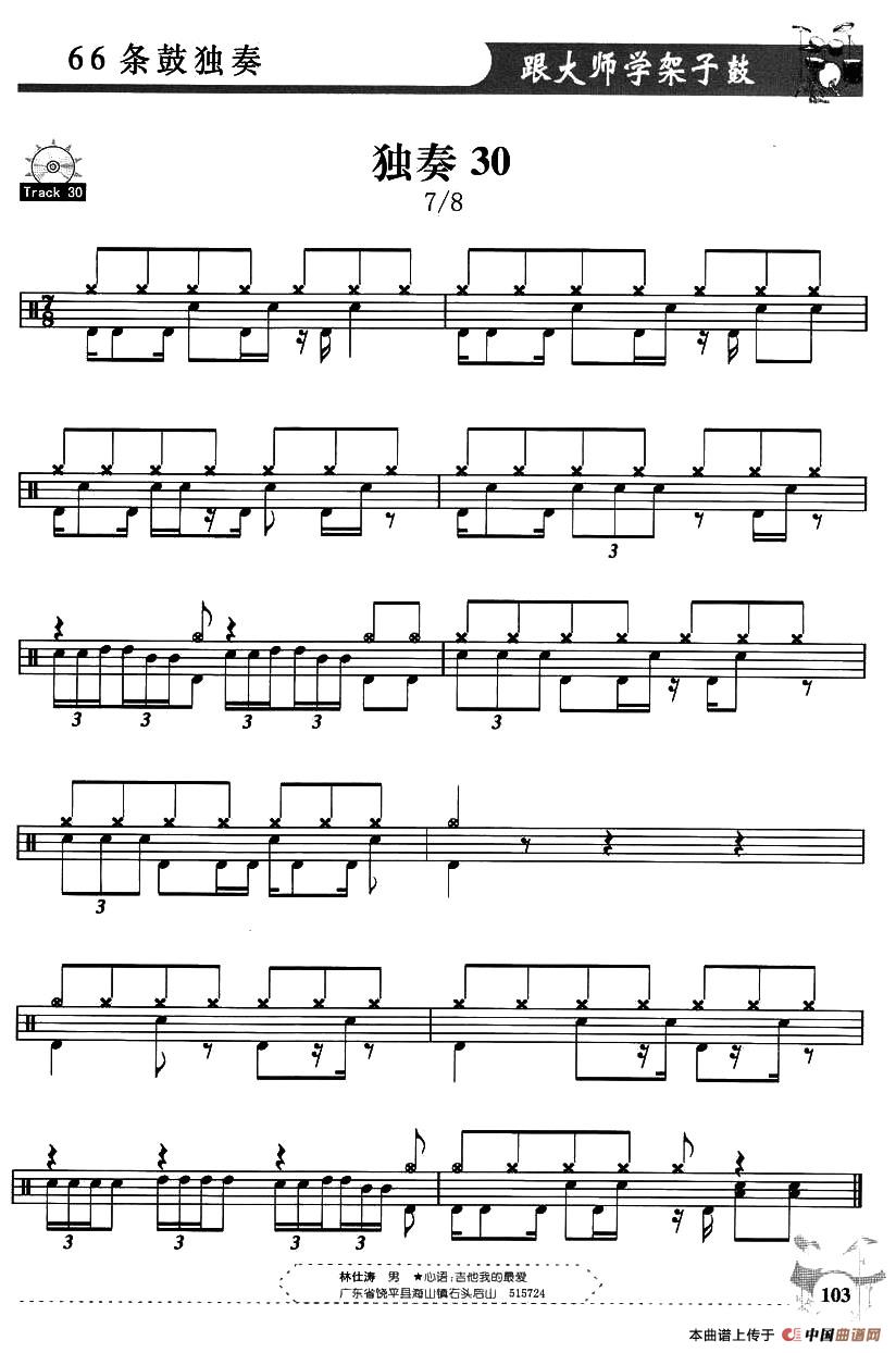 架子鼓练习曲 镲片的拍位练习 乐器谱