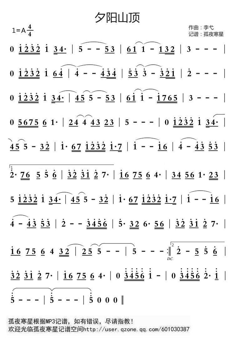 - [歌谱] 夕阳