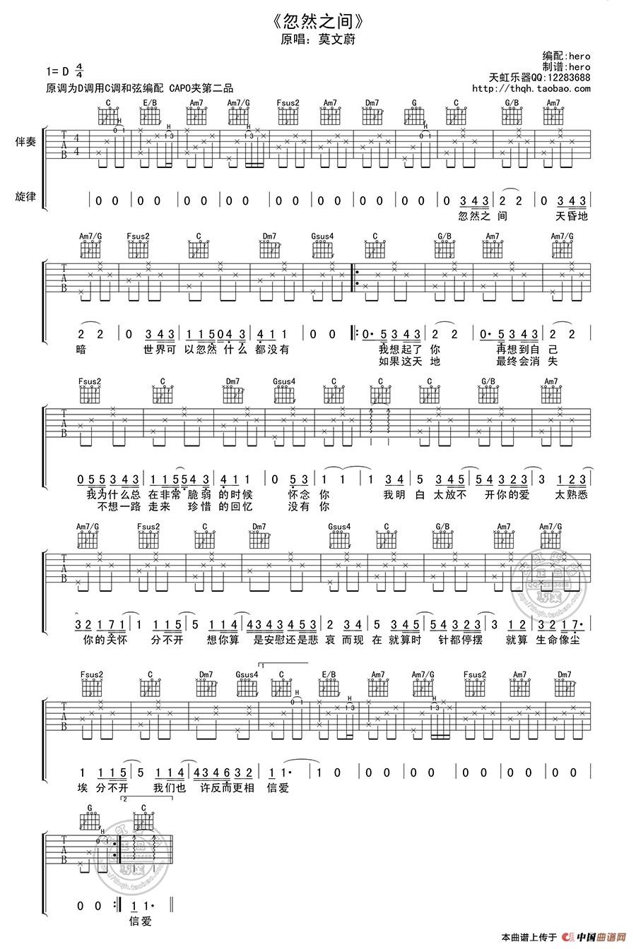 - [歌谱,吉他谱] 忽然之间