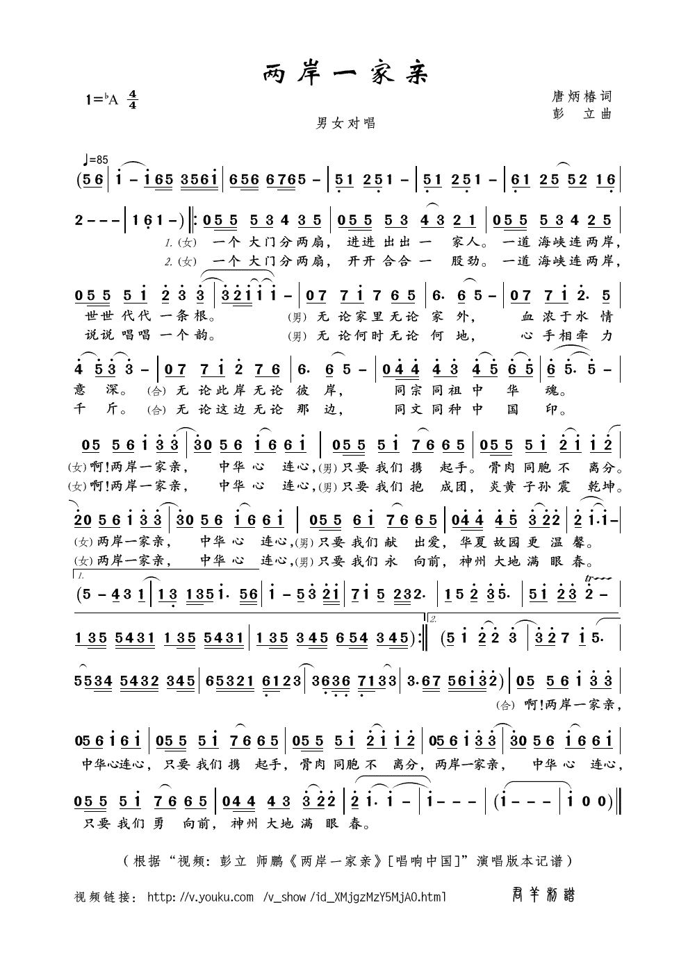 唱响中国 入围歌曲选 两岸一家亲