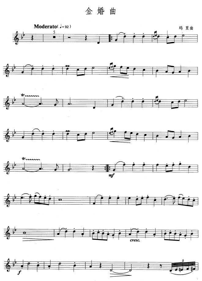- [萨克斯谱] 金婚曲 玛里