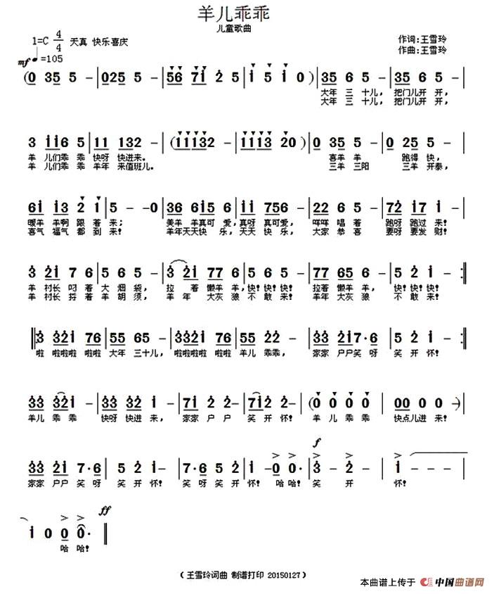 - [歌谱] 羊儿乖乖 儿童歌曲
