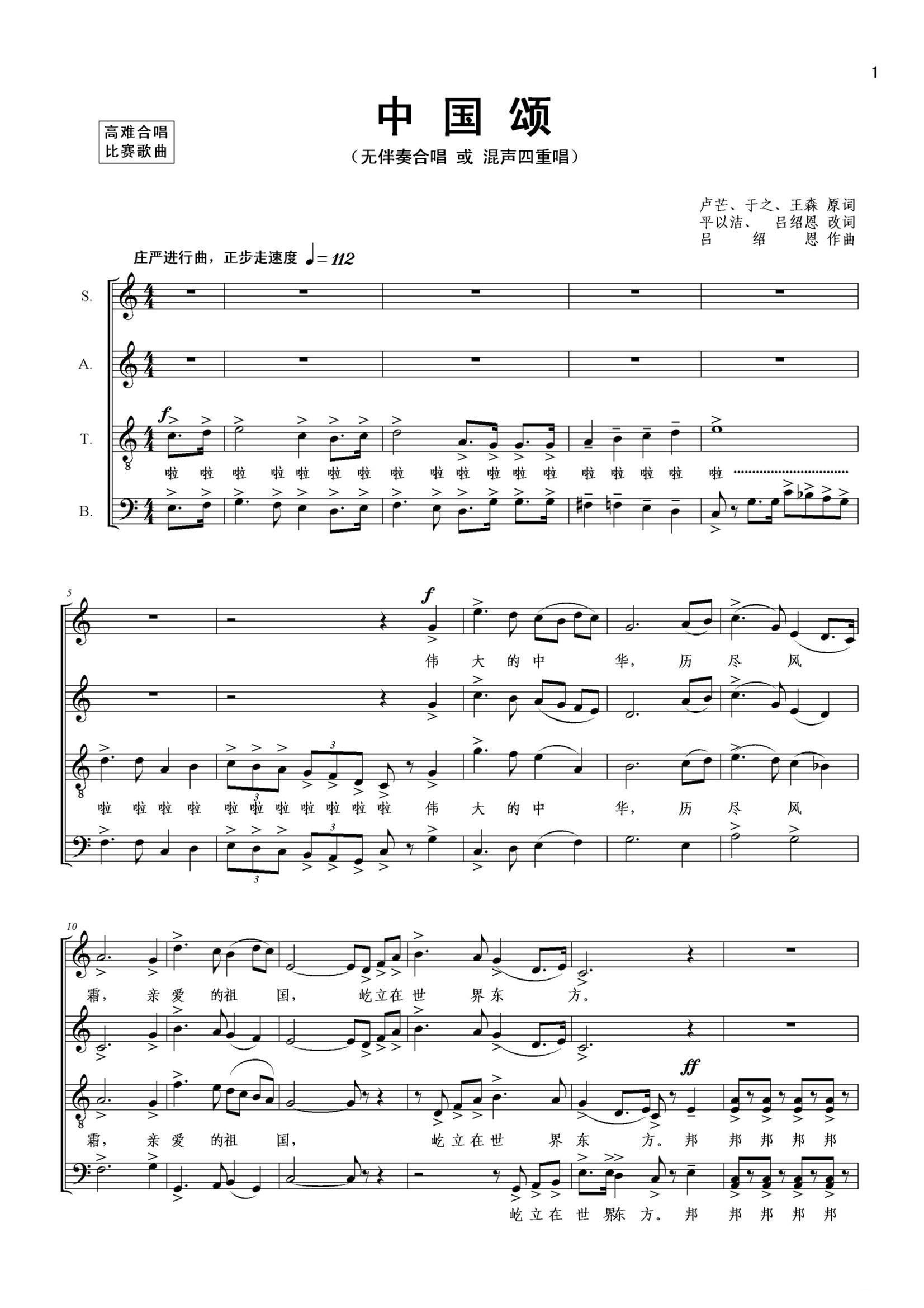 - [歌谱] 中国颂 卢芒 等词