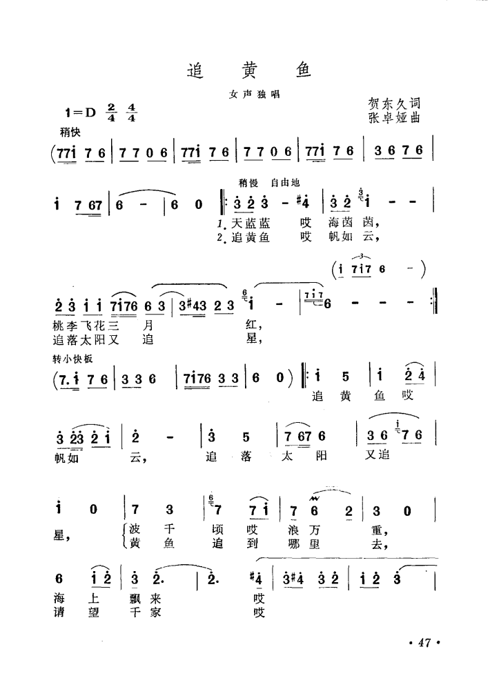 - [歌谱] 追梦桃源 湖北黄石港区征歌作品