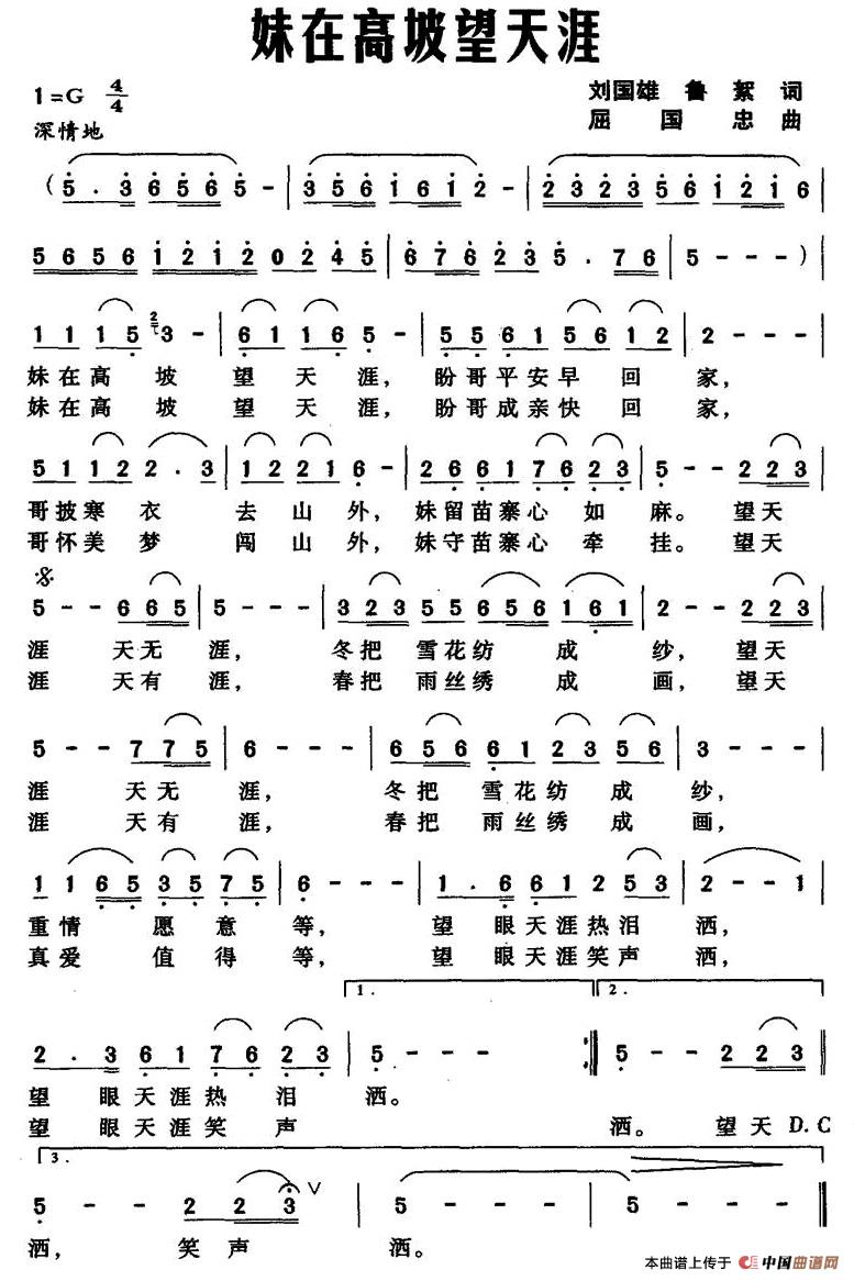 - [歌谱] 望情天涯