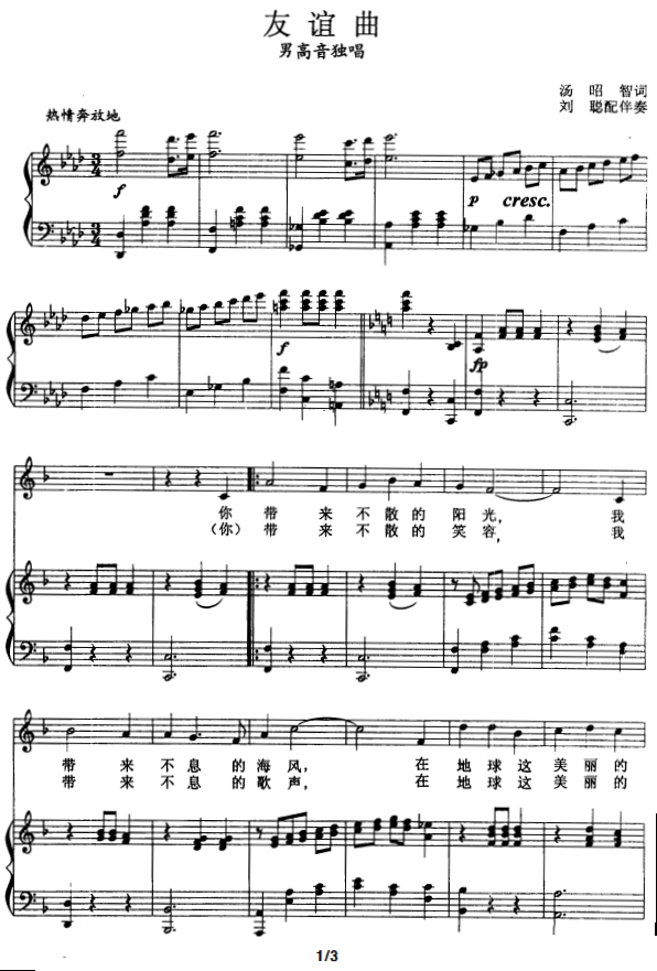 - [歌谱] 友好歌