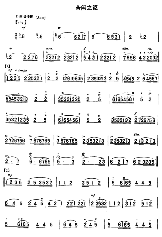 苦闷之讴 民乐类 二胡