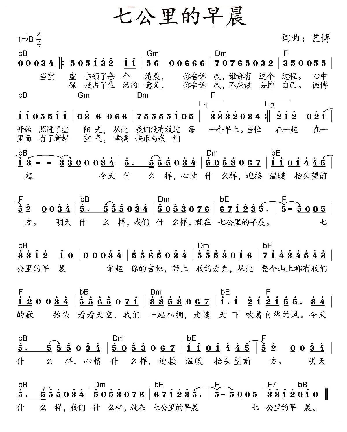- [歌谱] 早晨的歌